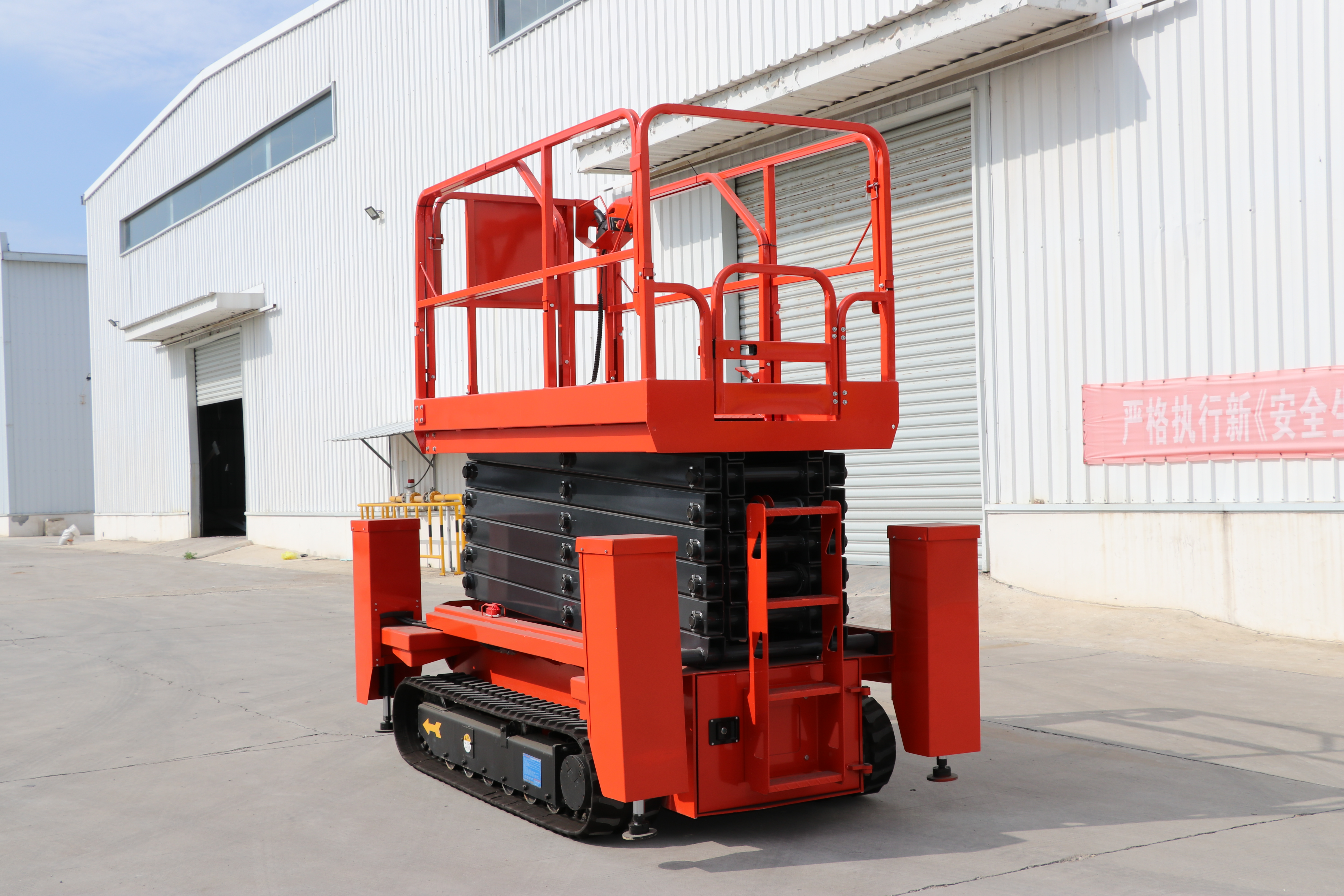 履帶式升降機是一款多功能機械設備,可以使用遙控器操作,遠程操控。履帶式升降機采用的是橡膠輪胎,橡膠輪胎的耐磨性是非常好的,使用壽命也長,而且橡膠輪胎可以承受住震動的力量。能夠在泥濘的地方輕松的進行作業(yè),比如泥地、雪地等不平整的地方都適合履帶式升降機。